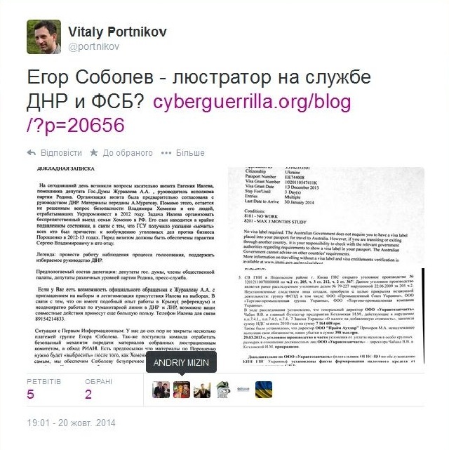 Недавно на твиттере известного журналиста Виталия Портникова появился интересный документ, который показывает связь ну очень близкого «друга» Виталия Егора Соболева с ДНР.