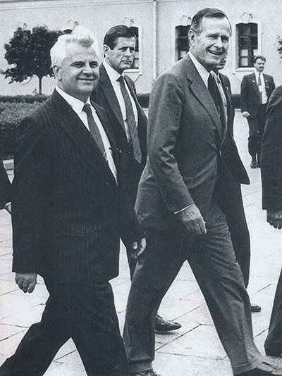– Правильно. 1 августа 1991 года Джордж Буш – старший с супругой пожаловал в Киев, проведя перед этим три дня в Москве в резиденции Ново-Огарево в компании четы Горбачевых. Выступая с трибуны Верховной Рады, американский президент уговаривал народных депутатов не создавать никакой независимой Украины, пугал “воинствующим, радикальным и суицидальным национализмом”.