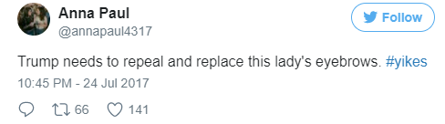 "Трампу нужно отменить и заменить брови этой женщины", – отметила annapaul4317.