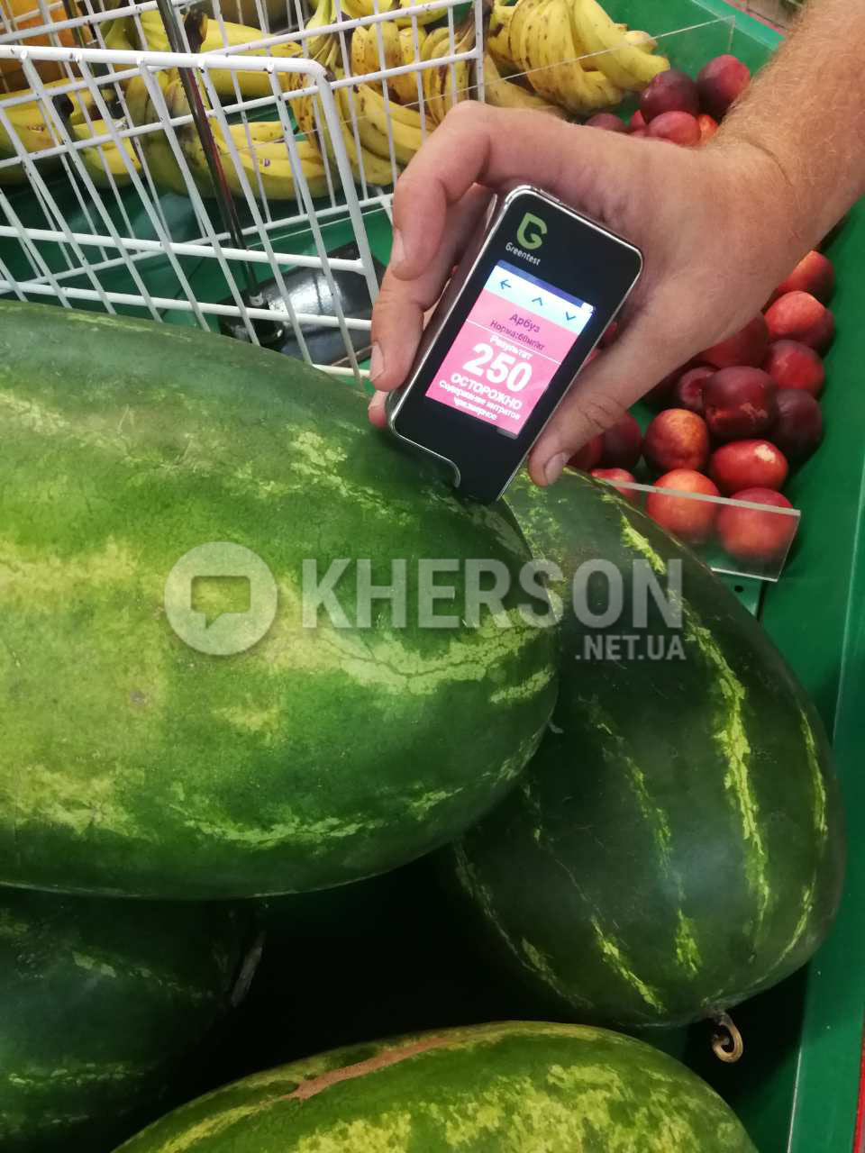 Так, в «Экомаркете» в торговом центре «Европорт» в Херсоне продают 2 вида арбузов по 8,99 грн и по 2,99 грн. Предельно допустимая концентрация нитратов в арбузе – 60 мг на кг. Однако специальный нитрат-тестер показал, что в арбузах 250 мг и 350 мг нитратов соответственно цене.