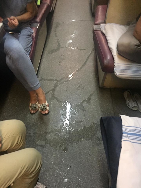В пассажирском поезде "Укрзалізниці" во время дождя протекают вагоны, и влага попадает на полы, постельное белье и одежду людей.