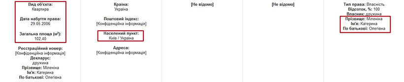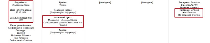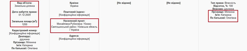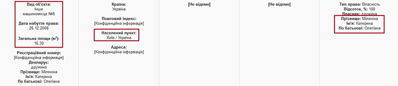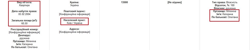 Те саме стосується й майна дружини прокурора, яке повністю відсутнє в реєстрі. Тож ми просто перелічимо задекларовану власність Катерини Олегівни: