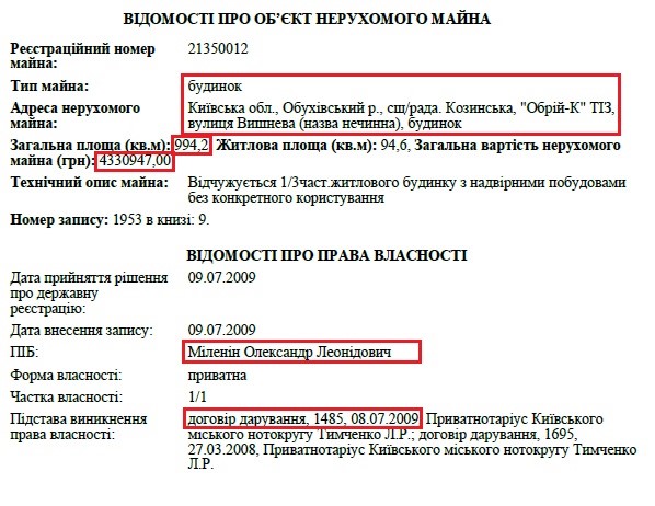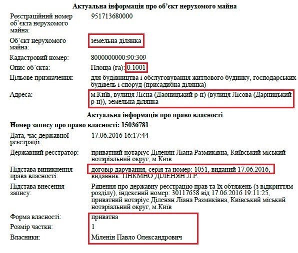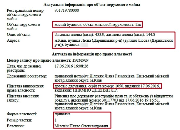 Підрахувати вартість усього майна родини столичного прокурора неможливо, адже частина власності відсутня в Держреєстрі речових прав на нерухоме майно. Тож ми просто підсумуємо, чим володіє сім’я Павла Міленіна: