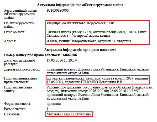 Матір прокурора має 4-кімнатну квартиру площею 175 кв. м і паркомісце в скандальномута найдорожчому будинку Києва на вул. Паторжинського, 14. Сьогодні таке житло коштує понад 700 тис. дол.