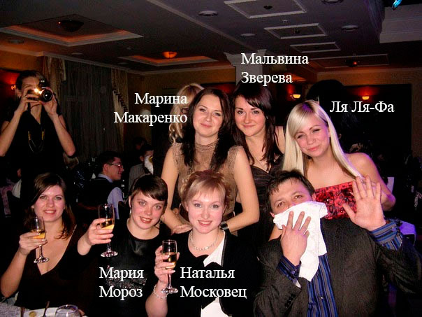 Вот скажите, порядочный человек будет скрывать внешность и представляться 3 чужими именами? Так Костя Гришин поступал еще задолго до моды на балаклавы. Называл себя Семеном, Андреем и Сергеем. Оцените фото на корпоративе - сделано в начале зимы 2013 года. Оперативники говорят, что Гришин судим, но так же он мог скрываться от обманутых клиентов и сотрудников фирмы, которую они супругой (рядом на фото) до недавнего времени имели в Донецке, а теперь перевезли в Киев.