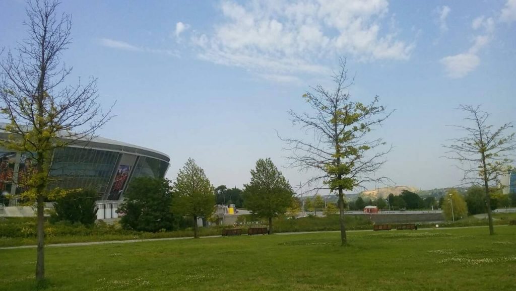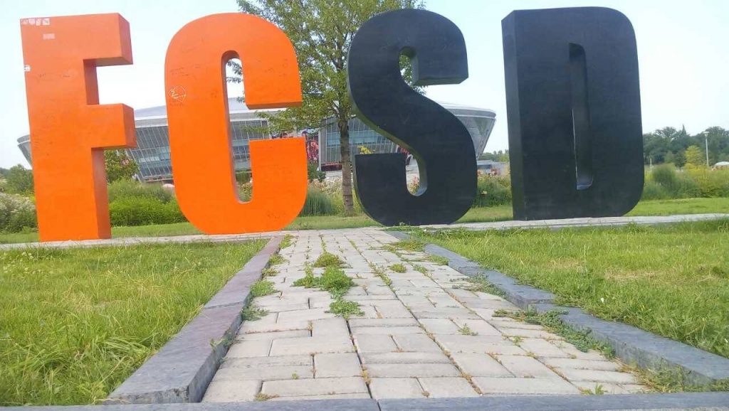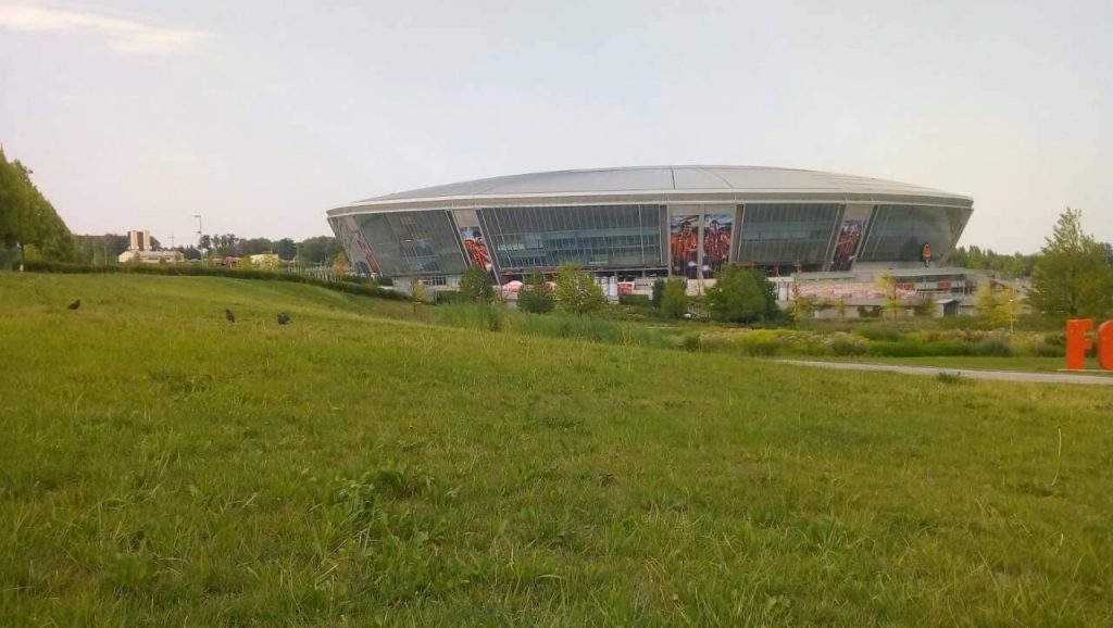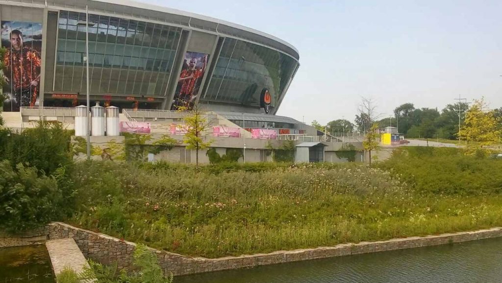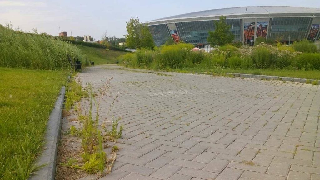 Вот новые фотографии парка у стадиона «Донбасс Арена». На самом крутом стадионе Украины больше не играют звезды европейского футбола. Конструкция теперь бесполезна. А территория вокруг запущена и неопрятна. Растения разрослись. Многие декоративные кустарники погибли. Повсюду растут бурьяны, как в каком-то селе.