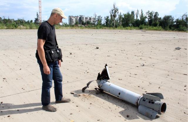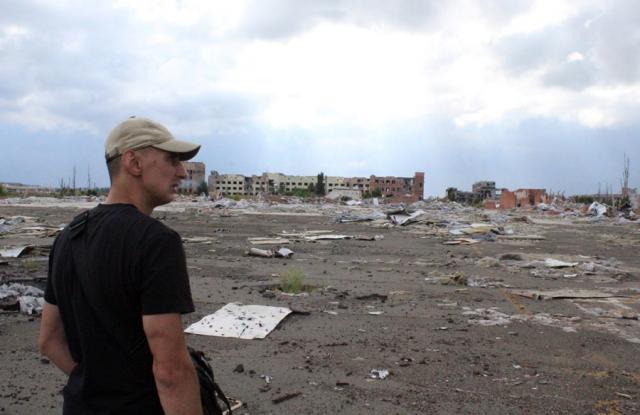 Автор фото сообщил, что снимки были сделаны 29−30 июля и написал: «21-ый век. Донецкий аэропорт. Апокалипсис локального масштаба». При этом вся территория вокруг ДАП усеяна осколками и частями снарядов, кроме того есть неразорвавшиеся — например, «застрявший» в земле снаряд реактивной системы залпового огня «Ураган».