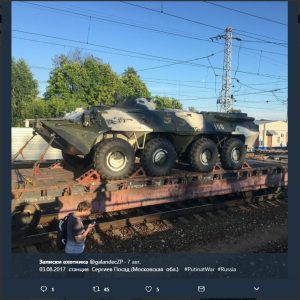 В свою очередь волонтеры международного разведывательного сообщества InformNapalm в ходе мониторинга социальных сетей и анализа фотографий установили, что с начала августа 2017 года началось масштабное перемещение российской военной техники по всей линии европейской границы Российской Федерации: от берегов Балтийского моря в Санкт-Петербурге и до берегов Черного моря, включая оккупированный украинский Крым», — говорится в публикации.