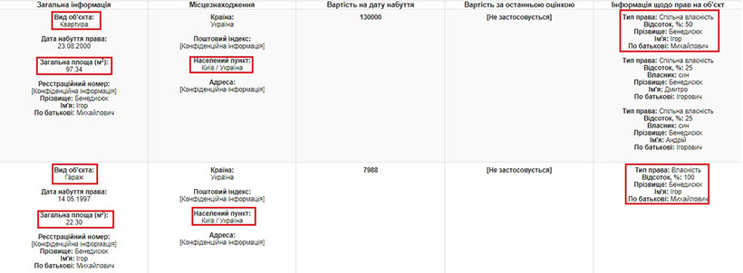 Так, семья Бенедисюка имеет квартиру площадью 97 кв. м и гараж площадью 22 кв. м в Киеве. Данные о месте нахождения квартиры отсутствуют в реестре прав на недвижимое имущество, однако, по нашей информации, проживает Игорь Михайлович с семьей на пр. Бажана, 24/1.