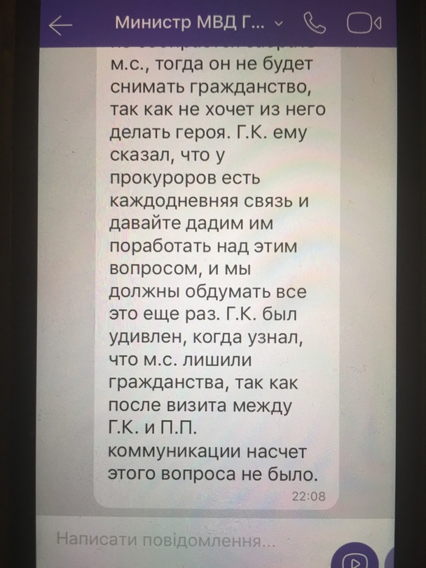 Согласно тексту переписки, Порошенко поднимал вопрос об экстрадиции Саакашвили во время встречи с премьер-министром Грузии в Давосе. После этого тот же вопрос был поднят во время визита Порошенко в Тбилиси.
