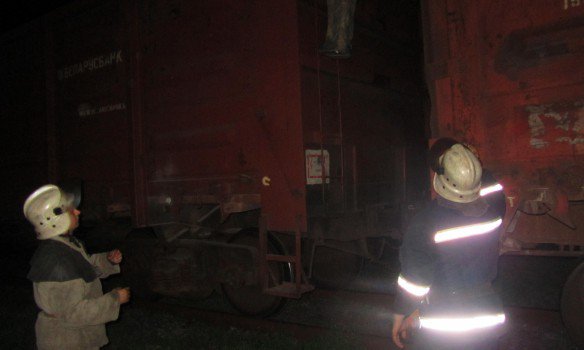 Не прошло и двух часов от дежурного ГУ ГосЧС города Киева снова поступило сообщение о том, что на железнодорожной станции Киев-Волынский охранник заметил огонь и искрение вагона товарного поезда.