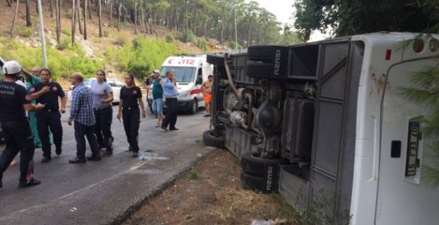 Автобус с 26 туристами перевернулся в турецкой провинции Анталья.