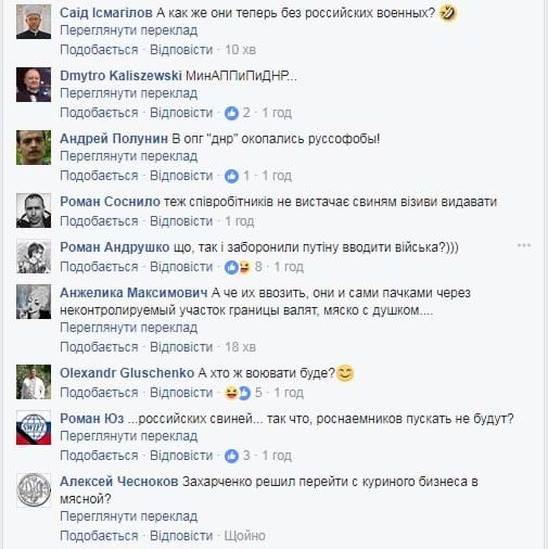 "В "ДНР" объявили блокаду России - запретили ввоз российских свиней", - написал в своем Facebook блогер Денис Казанский.