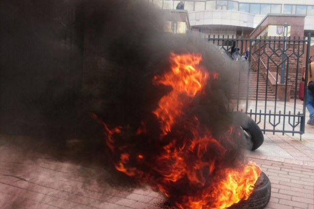 В завершение протеста активисты зажгли символическую автомобильную шину.