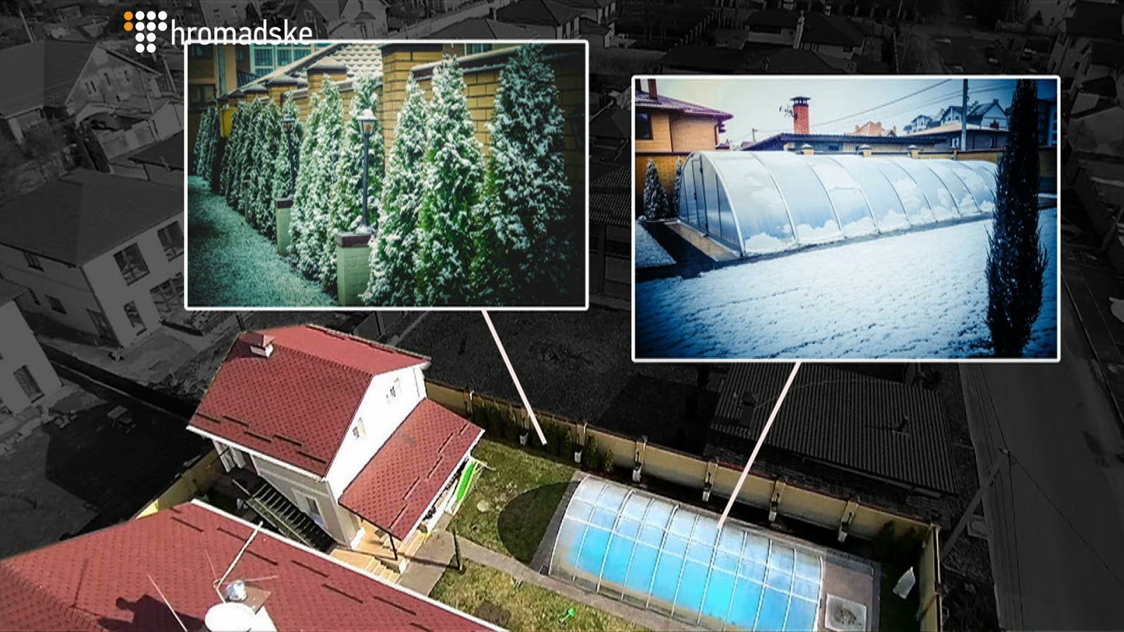 На территории поместья, из которого выехал внедорожник Ольги Воловчук, кроме большого двухэтажного дома, также расположены хозяйственная постройка, крытый бассейн и беседка. За подобные объекты в этом районе сегодня просят до 10 миллионов гривен.