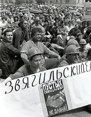 При Горбачеве Совмин СССР начал разрабатывать план постепенного сокращения добычи угля на Донбассе, поскольку часть шахт там были убыточны даже по советским меркам, и поддержку разработки новый угольных бассейнов, в частности Кузбасс. Поняв, что это станет началом конца особого статуса Донбасса, превращением его в самый заурядный регион страны, «донецкий клан» стал организатором знаменитой шахтерской забастовки 1989 года. Она началась в Кемеровской области (где уже имел большие связи молодой директор донецкой шахты «Ждановская» Виктор Нусенкис), а через неделю её поддержали шахты Донбасса – и одной на стачку организованно вышла шахта им. Засядько, которой руководил Герой Социалистического труда Ефим Звягильский. Экономические требования забастовочных комитетов перемешивались политическими – для оказания давления на Москву и Киев.
