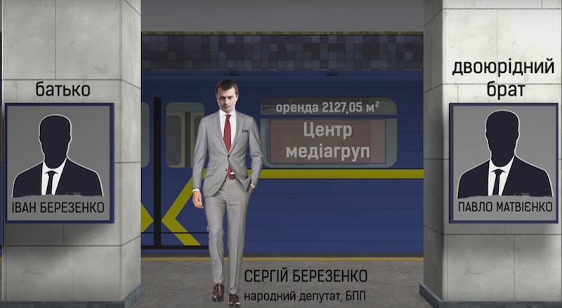 Например, компания «Центрмедиагрупп» арендует более 2000 кв.м. стеклянных поверхностей на окнах вагонов. Ею владеют Иван Березенко и Павел Матвиенко. Иван Березенко является отцом нардепа от президентской партии Сергея Березенко, который раньше был депутатом Киевсовета от блока Леонида Черновецкого. А второй совладелец фирмы - двоюродный брат Березенко.