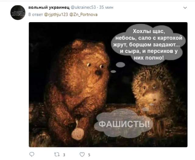 «Предлагаю пропускать через блокпост только тех кто споет гимн Украины на камеру. А видео сбрасывать на сепарский блокпост. Родину надо любить»;