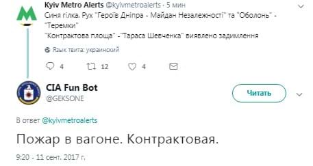 "Синяя ветка. Движение "Героев Днепра - Майдан Незалежности" и "Оболонь" - "Теремки". На перегоне "Контрактовая площадь" - "Тараса Шевченко" было обнаружено задымление", - говорится в сообщении на странице метро в Facebook.