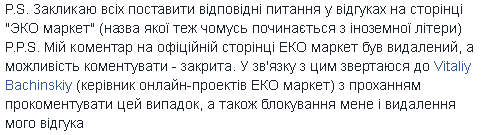 Затем он добавил, что комментарий на официальной странице "ЭКО Маркета" был удален, а возможность комментировать - закрыта.