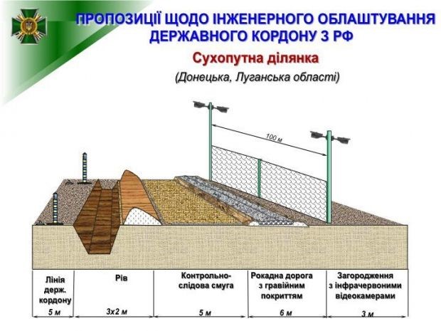 В результате Кабмин хотел получить вдоль всей границы с РФ полосу сооружений, которая бы включала ров, насыпь, контрольно-следовую полосу и рокадную (то есть вдоль границы) дорогу. Дальше планировалось поставить либо забор с инфракрасными камерами, либо через каждые 20 километров наблюдательные вышки: