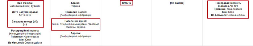 Дочка судді Юлія Олександрівна Франтовська теж обзавелася елітним будинком, який придбала за більш ніж 1 млн грн у Гнідині, що під Києвом. Звідки гроші на такий маєток у Юлії Олександрівни, яка повноцінно почала працювати прокурором лише з 2012 року, – невідомо.