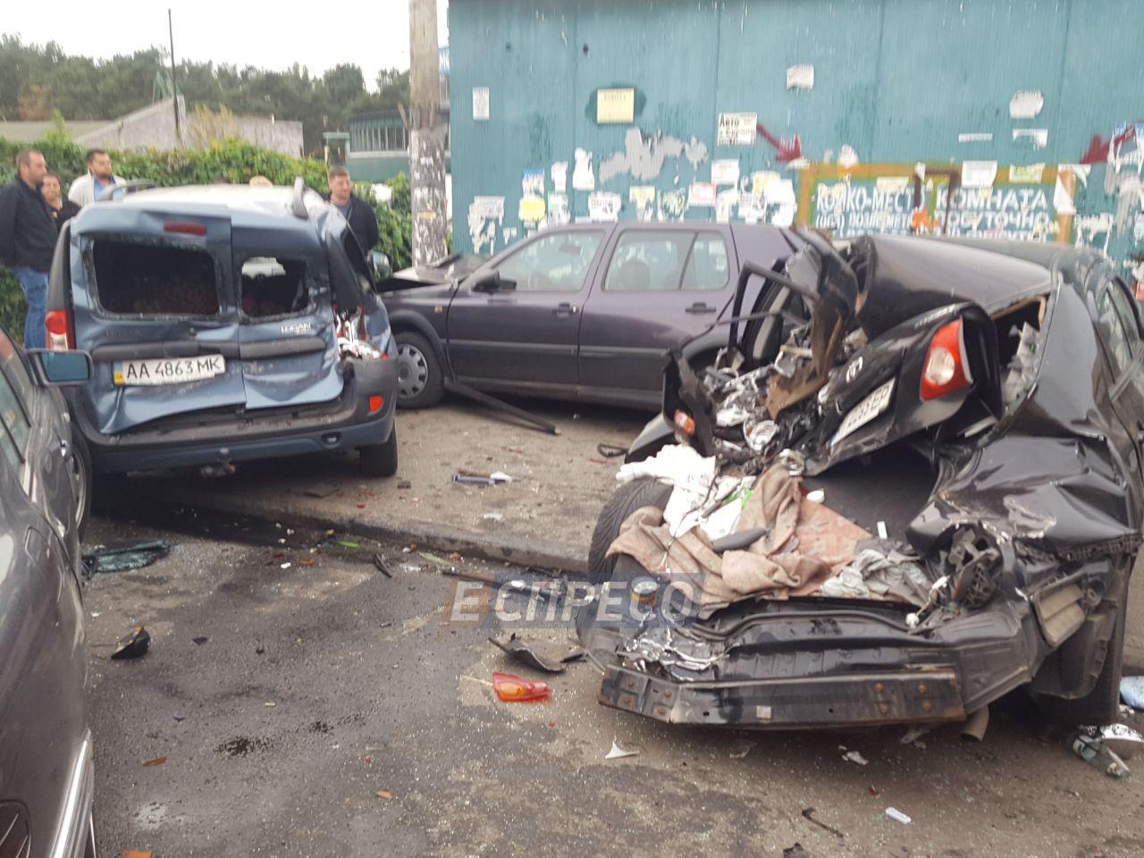 На въезде в Киев столкнулись КАМАЗ и 5 легковушек
