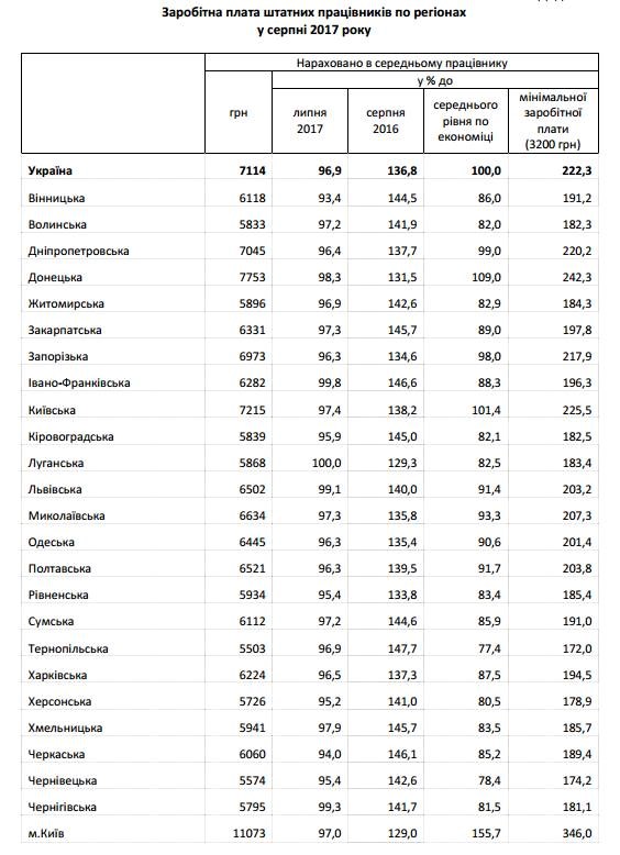Средняя зарплата в Украине в августе составила 7114 грн.