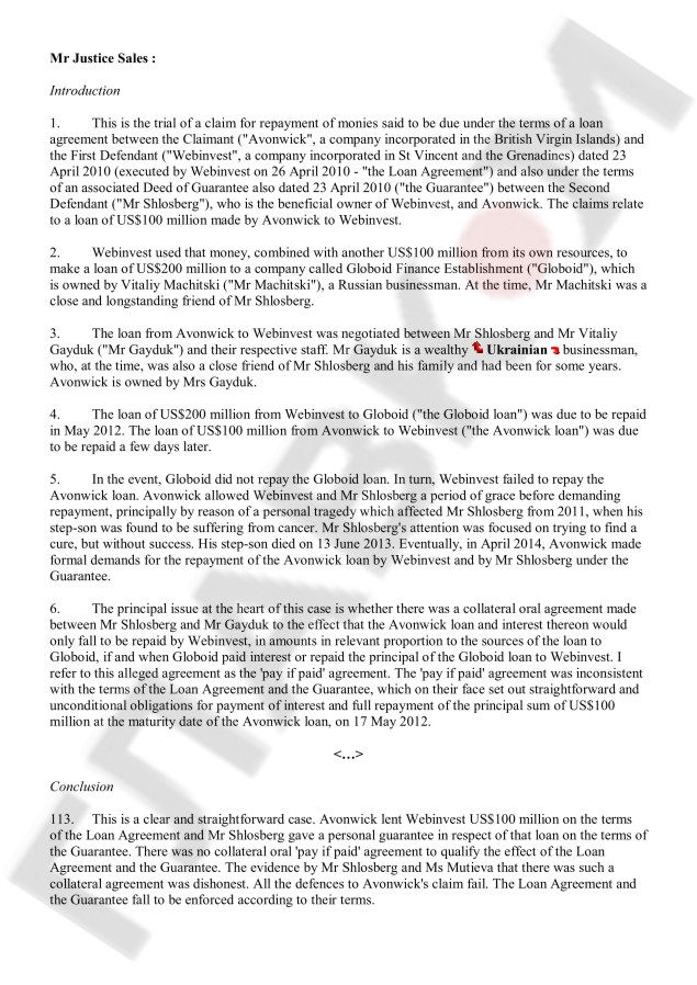 Гайдук в суде это опровергал. Для британского правосудия убедительнее выглядели слова украинского бизнесмена и его представителей. Показания Шлосберга и его помощницы судья назвал лживыми и отверг существование устной договоренности.