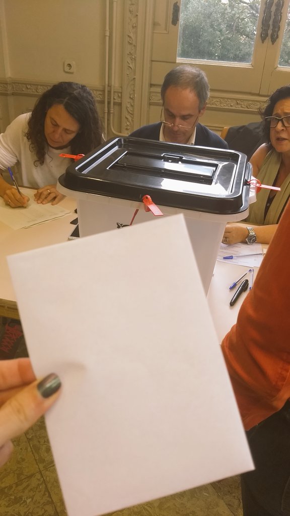 Жители Каталонии, несмотря на препятствия со стороны полиции, продолжают приходить на избирательные участки для проведения голосования о независимости автономии. Фотографии с избирательных участков о том, как голосуют каталонцы, публикуются в социальных сетях.