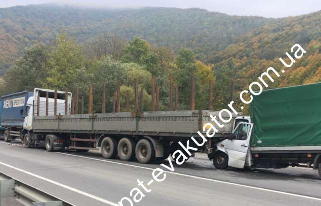Зі слів водія першої вантажівки, вище згадане авто підрізало декілька автомобілів і зникло з місця ДТП не зупинившись, пише Закарпастький евакуатор.