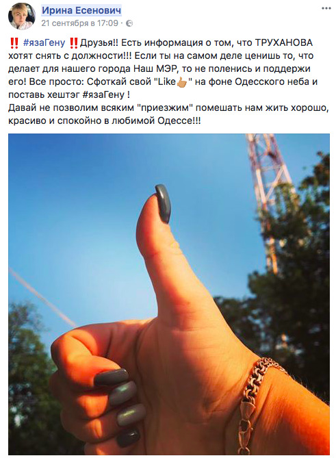 Скрин: флешмоб в социальных сетях начала депутат горсовета от мэрской партии "Доверяй делам" Ирина Есенович