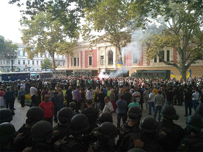 В свою очередь, оппоненты мэра воспользовались протестными настроениями одесситов и дважды пытались штурмовать горсовет: первый раз в воскресенье 17-го сентября (пожар был в ночь с пятницы на субботу 15-го веренся) и в среду 20-го сентября во время очередной сессии горсовета. Несмотря на жесткое противостояние с полицией, активистам все же удалось войти в горсовет. Однако мэр и депутаты до этого момента эвакуировались из помещения через боковой вход.