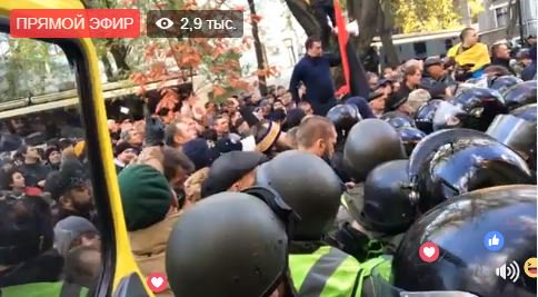 Активисты попытались прорваться к машине, но началась жесткая потасовка, в толпе распылили слезоточивый газ.