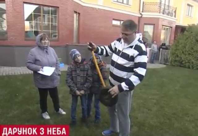 В Киевской области в селе Софиевская Борщаговка на крыльцо частного дома упала часть конструкции вертолета, пролетавшего над зданием.