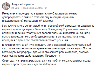 В подтверждение написанного юрист Андрей Портнов сообщил, что согласно Закону о беженцах запрещено кого-либо депортировать, пока лицо находится в процессе обжалования этого решения. После всех судебных реформ, времени это займёт столько, сколько осталось править действующему Президенту Украины.
