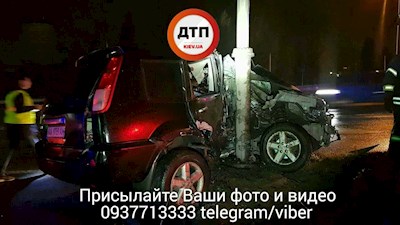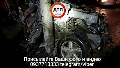 На Большой окружной дороге в Киеве водитель не справился с управлением и въехал в столб.