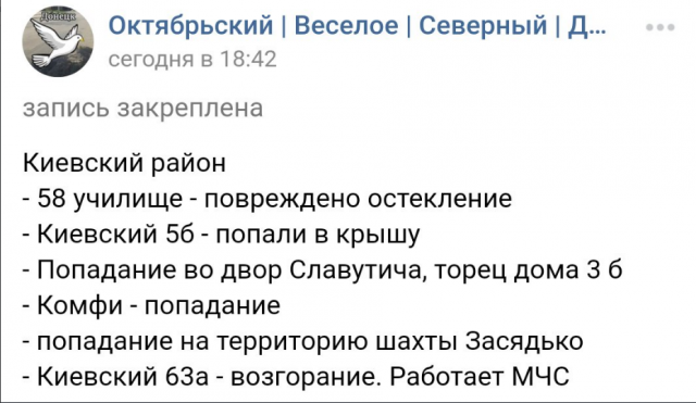 Местные жители в социальных сетях сообщают, что вероятнее всего снаряды упали в районе частного сектора на ул. Экономической и на Путиловке. Кроме того, есть данные о 6 прилетах в районе Ветки и рынка «Маяк».