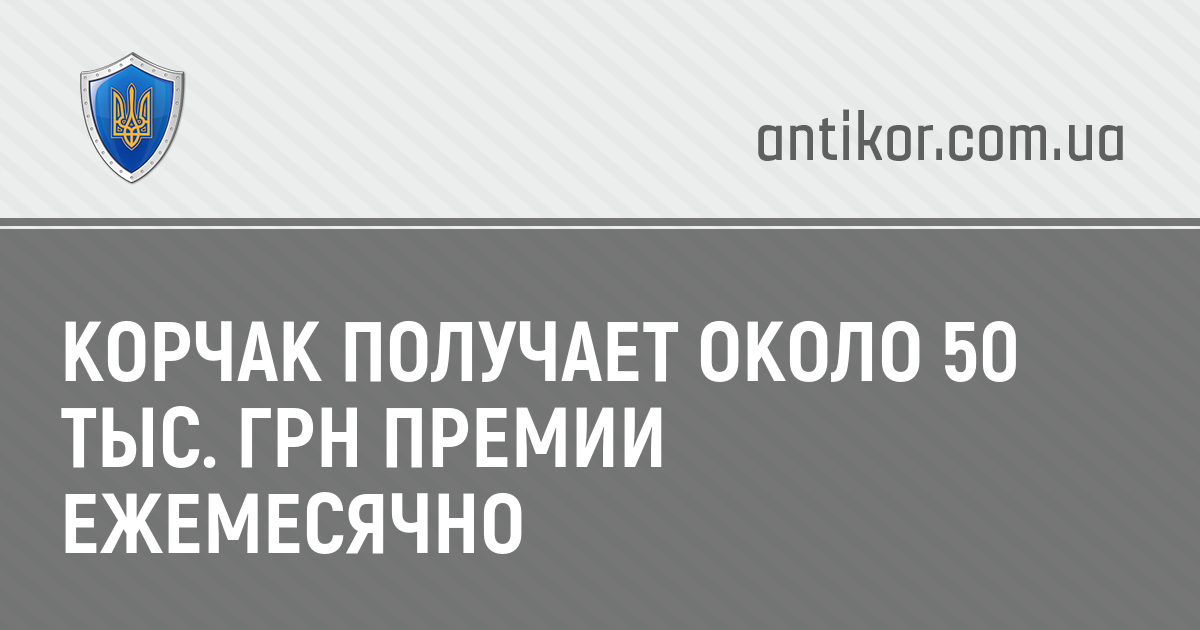 Корчак получает около 50 тыс. грн премии ежемесячно