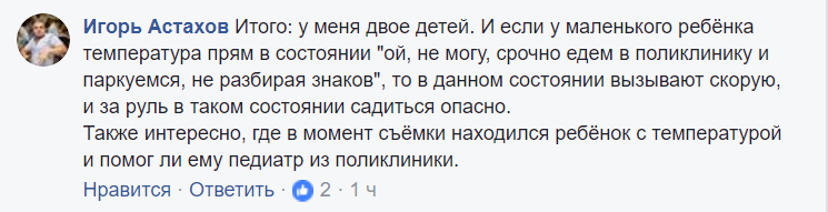 "Итого: у меня двое детей. И если у маленького ребёнка температура прям в состоянии "ой, не могу, срочно едем в поликлинику и паркуемся, не разбирая знаков", то в данном состоянии вызывают скорую, и за руль в таком состоянии садиться опасно.