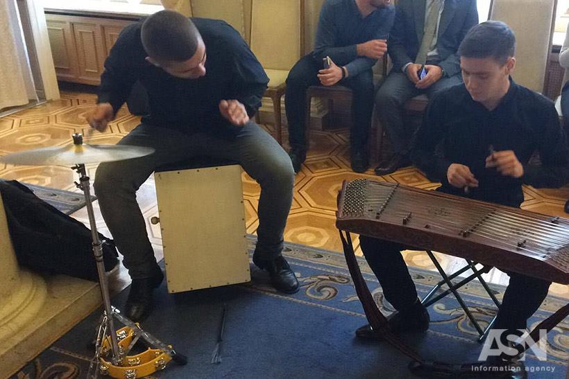 При этом все мероприятие сопровождалось живым исполнением украинской народной музыки в современной обработке. Выпил вина и спикер Парубий.