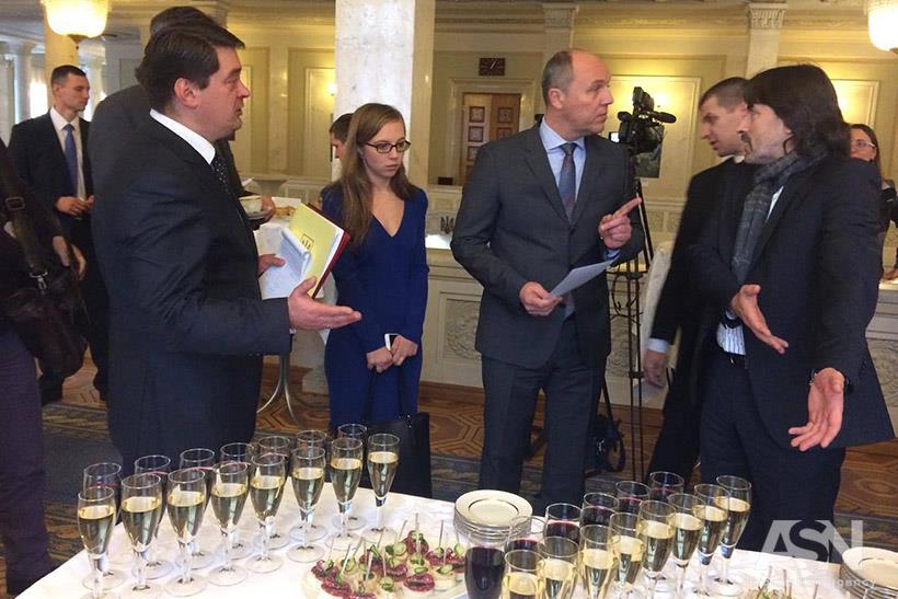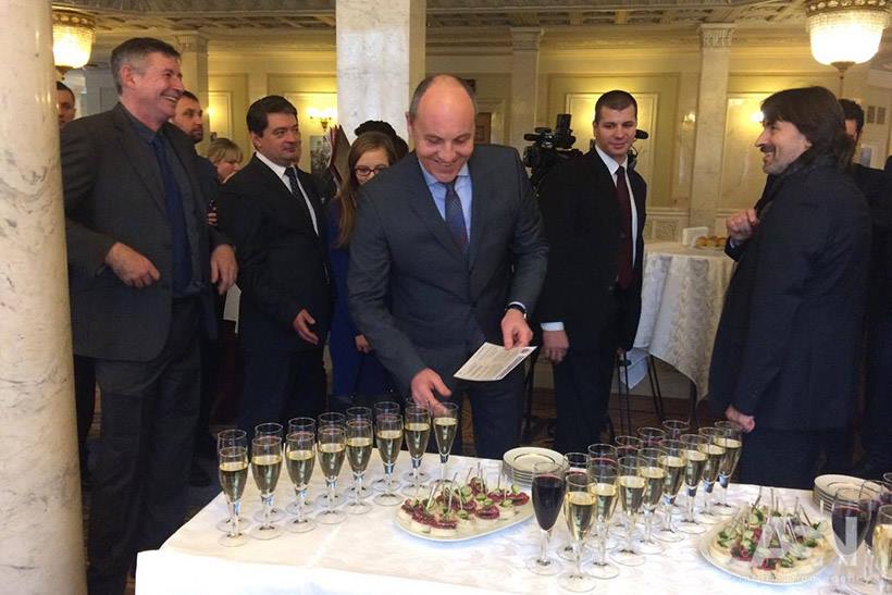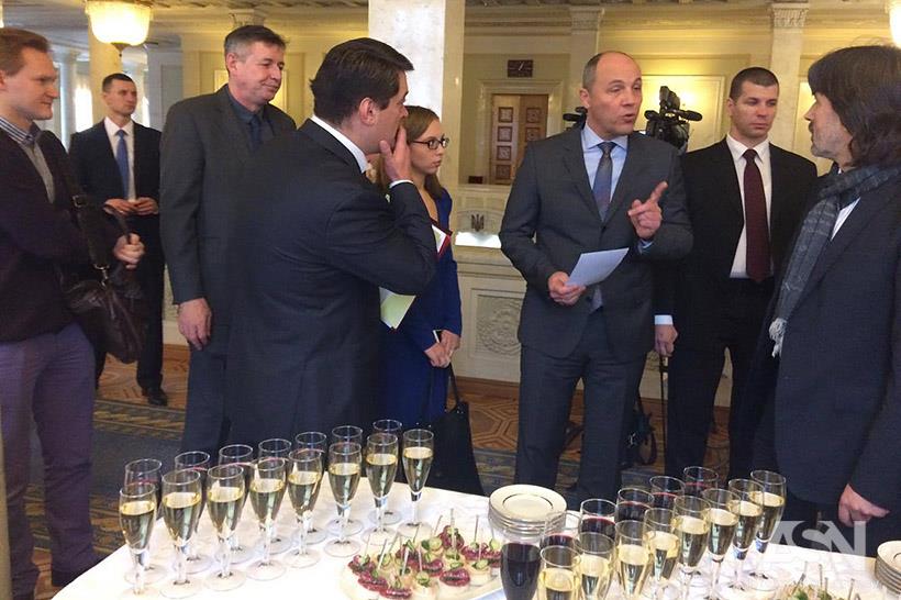 После официальных заявлений спикер парламента Андрей Парубий пригласил европейских гостей, нардепов и журналистов отметить такое важное событие.