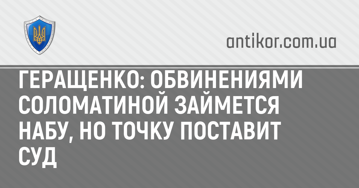 Обвинениями Соломатиной займется НАБУ, но точку поставит суд. Об этом в интервью журналистам заявил народный депутат фракции "Народный фронт" Антон Геращенко.