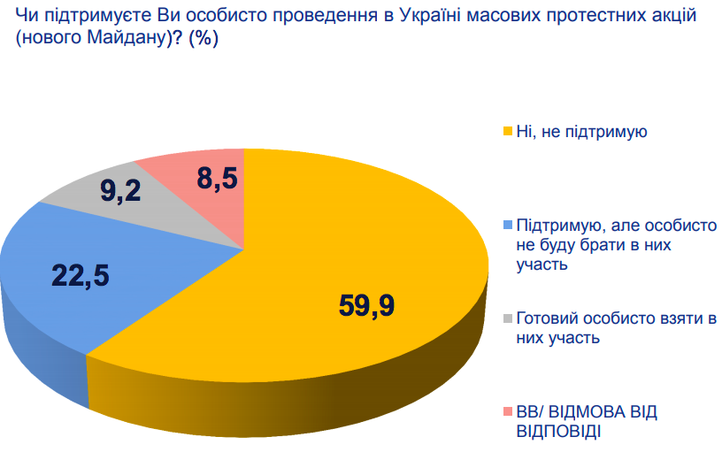 Или еще один интересный слайд – с вопросом, поддерживают ли люди новый майдан. 59,9% заявили, что не поддерживают.