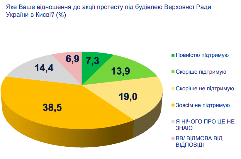 Уточняющий вопрос – как респонденты относятся к протестам под Верховной Радой (где с 17 октября митингуют в палатках сторонники Михаила Саакашвили), оказался еще более показательным: почти 58% опрошенных заявили о своем негативном отношении.