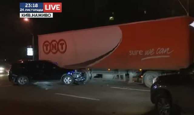 Как сообщает корреспондент, авария произошла на выезде из Киева. В результате ДТП никто не пострадал.