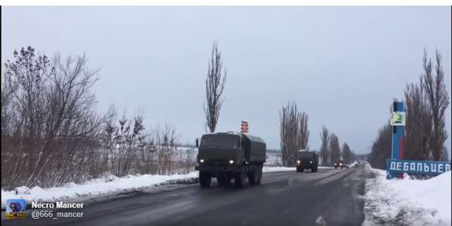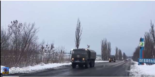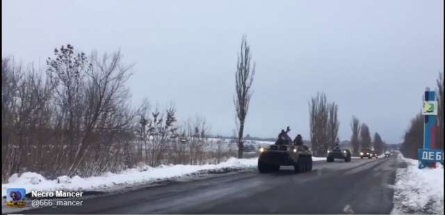 В социальных сетях очевидцы подтверждающее видео, на котором показано движение техники в районе оккупированного Дебальцево.