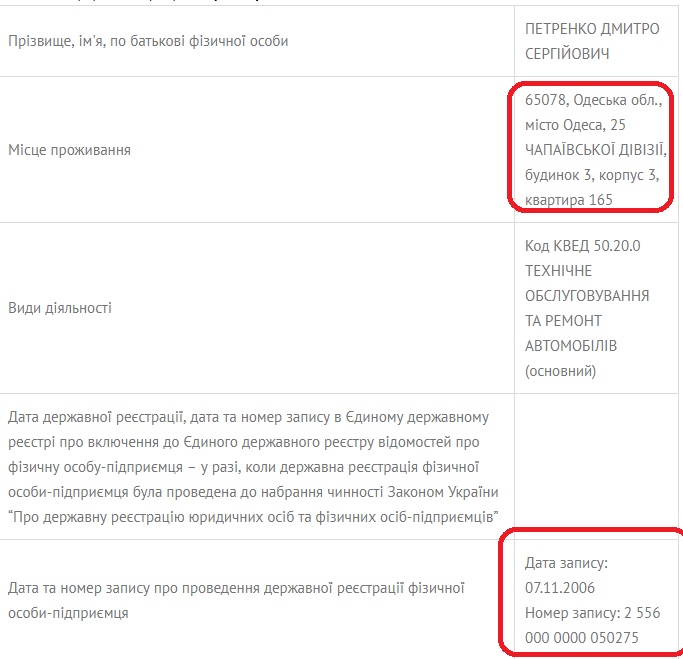 Отметим, что некий ФЛП «Петренко Дмитрий Сергеевич» был зарегистрирован в Одессе в новостройке по адресу ул. 25-й Чапаевской дивизии 3/3, но его закрыли три года назад. В августе этого года в интервью журналу «Шкипер», чиновник уверял, что родился в семье капитана.