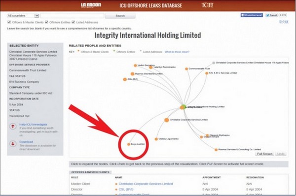 В начале 2013 года Международный консорциум журналистов-расследователей обнародовал базу данных владельцев оффшоров. По данным сайта offshoreleaks.icij.org, среди владельцев виргинской компании Integrity International Holding Limited фигурирует именно Борис Ложкин. То есть именно он, будущий глава Администрации Президента Украины, сделал гаванью для своих денег заморский остров. И мотив здесь мог быть только один — на оффшорных островах с доходов из-за границы не платят налогов.