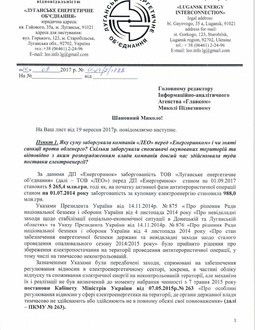 ООО «ЛЭО» также предоставило редакции свою версию того, кто и как довел до полного финансового краха энергосети Луганщины.